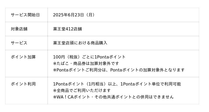 2025年6月23日(月)より、東北地方を中心に412店舗のドラッグストアを展開する薬王堂でのお買い物の際、100円(税抜)ごとに1Pontaポイントがたまり、1Pontaポイント=1円相当としてご利用いただけます。これを記念し、9月におトクなキャンペーンを開催予定です。