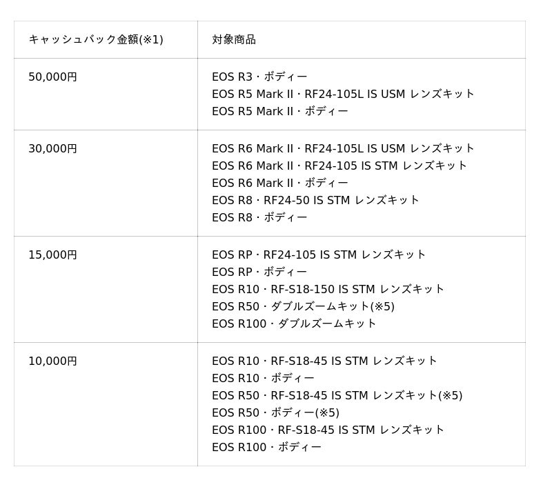 「EOS R5 Mark II」などを対象に最大5万円をキャッシュバック