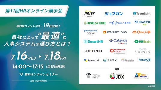 【7/16-18無料セミナー】話題の人事労務システムを一括比較!『第11回HRオンライン展示会』へ登壇決定
