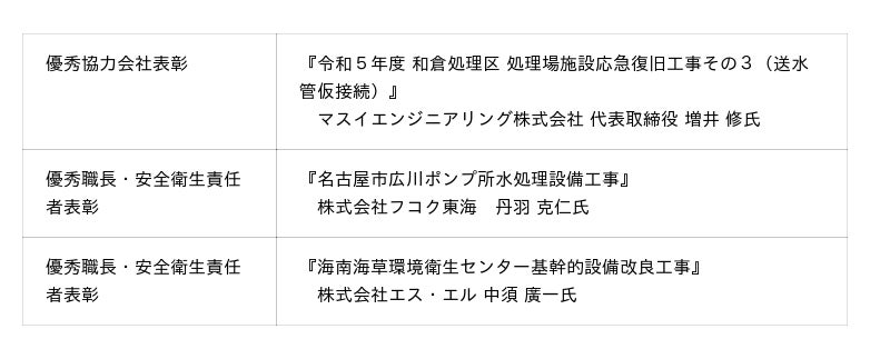 <水ing・協力会安全活動表彰>