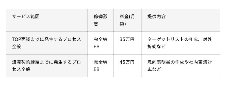 月額30万円から利用可能、M&A業務を一貫サポートするアウトソーシングサービス~専任担当者不在の課題を解決、年間最大1,000万円のコスト削減を実現~