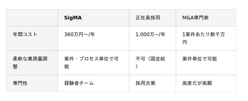 Sign株式会社(所在地:神奈川県相模原市中央区下九沢1159-1、代表取締役:真屋 和生、以下当社)は、2025年6月19日より、上場企業やスタートアップ企業のような買収会社を対象としたM&A業務アウトソーシングサービス(MPO)事業の「SigMA(シグマ)」を開始いたします。本サービスは、M&A戦略の準備から案件発掘、交渉、クロージングまでの一連のプロセスを包括的に支援する「社外M&Aチーム」として機能し、従来のM&A担当者採用や仲介会社利用と比較して大幅なコスト削減と効率化を実現します。