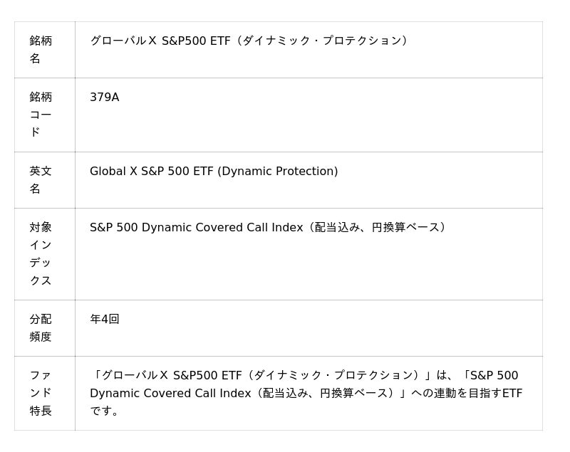 「グローバルX S&P500 ETF(ダイナミック・プロテクション)」【379A】