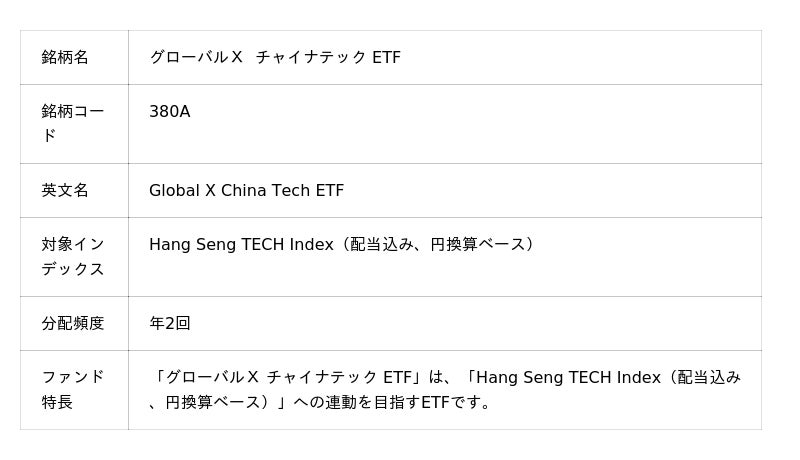 「グローバルX チャイナテック ETF」【380A】