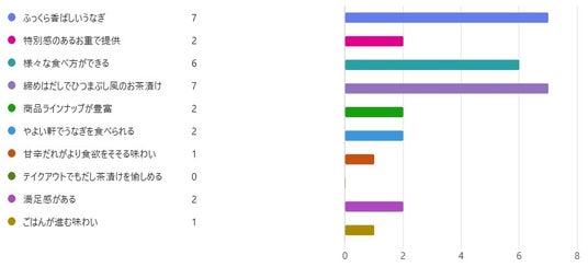 調査内容:『うなぎまぶし定食』のおすすめポイントを選択肢の中から2つ選択