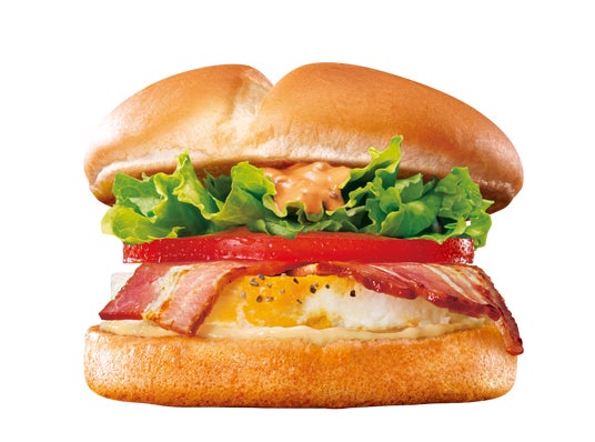 商品概要:ジューシーな自社製ベーコン、フレッシュなレタスやトマト、ぷるぷる食感のたまごなどをふっくらなめらかな食感のバンズで挟んだ一品です。