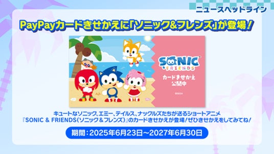 6月23日(月)より、PayPayに『SONIC & FRIENDS』のカードきせかえが登場しました。“ソニック&フレンズ グリーンヒル”と“ソニック&フレンズ 南の島”の2つのデザインを公開中です。無料ですので、ぜひお試しください。