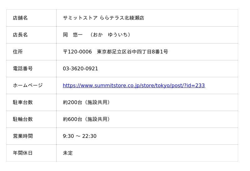 北綾瀬駅直結の“食のテーマパーク” サミットストアららテラス北綾瀬店がグランドオープン