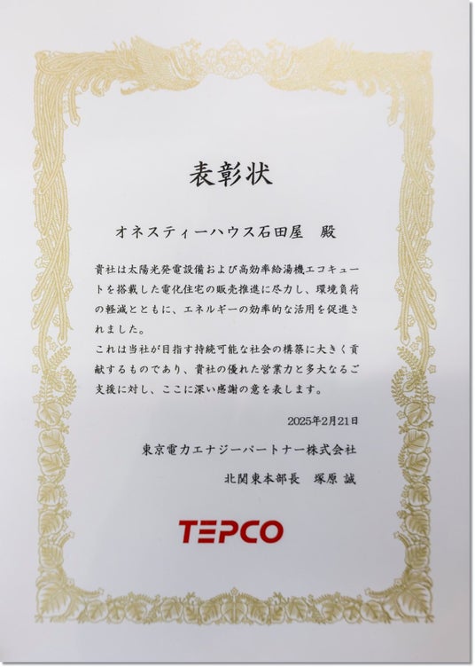 これらの功績が認められ、東京電力グループより感謝状を授与されました。