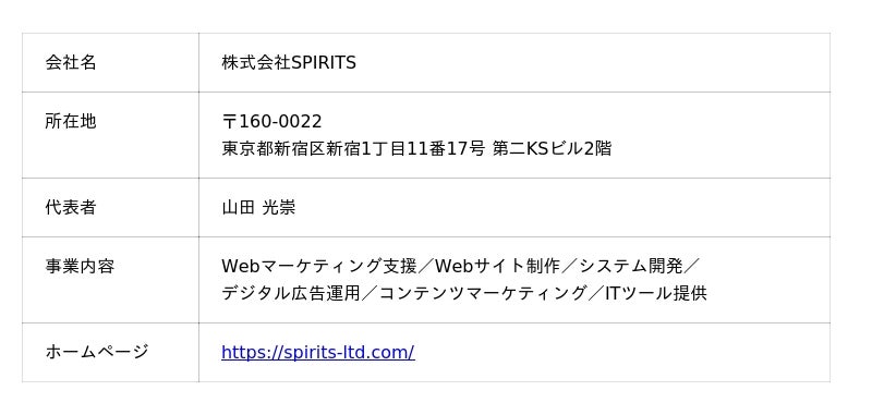 株式会社SPIRITS(スピリッツ)は、Webマーケティングでのビジネス成果をサポートする東京のWebマーケティング会社です。Web制作・ホームページ制作・システム開発・デジタル広告運用・コンテンツマーケティングなどを通して、御社のWebマーケティングを一貫してサポートします。