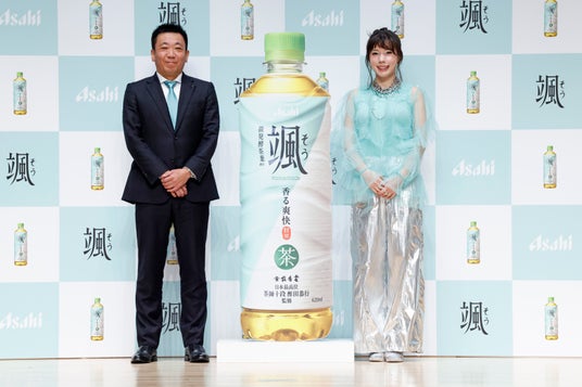 そして、忙しい日々を過ごす皆様に“リフレッシュ”を届けるべく、 商品を全面リニューアルするとともに「新時代の緑茶」をテーマにコミュニケーションを刷新いたします。これに伴い、俳優として活躍する仲里依紗さんが出演する、新時代の緑茶 『アサヒ 颯』 の新TVCM、「香リフレッシュ!」編(15秒)を2025年3月4日(火)から放映開始いたします。新TVCMの発表を記念し、仲里依紗さんをゲストにお招きした「新時代の緑茶 『アサヒ 颯』 新CM発表会」を2025年3月3日(月)に行いました。本イベントでは、アサヒ飲料株式会社 マーケティング二部長 高橋 徹による『アサヒ 颯』の2025年ブランド方針についてのご紹介、新CMのお披露目、仲里依紗さんによるCM撮影時のエピソードや『アサヒ 颯』の新しいコミュニケーションテーマに絡めたトークセッション、切り替えクイズを行いました。