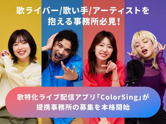 ColorSing株式会社(東京都渋谷区、代表取締役社長 今井拓自、代表取締役会長 柴田順任)が運営する歌特化ライブ配信アプリ「ColorSing(カラーシング)」は、6月26日(木)より提携事務所(オーガナイザー)の本格募集を開始しました。