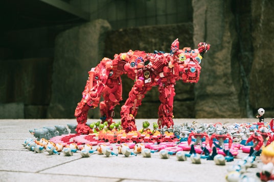 作品制作のための「素材」を提供することも参加方法のひとつ。写真はおもちゃを集めて生まれた作品。/イメージ:千葉国際芸術祭2025プレ企画 藤浩志「かえっこバザール in そごう千葉店」(2025年5月11日開催)
