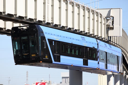 千葉都市モノレールは、懸垂型モノレールとして営業距離世界最長(15.2km)のギネス認定を持つ。空中からまちなかを眺めるような体験ができる。/写真提供:千葉都市モノレール
