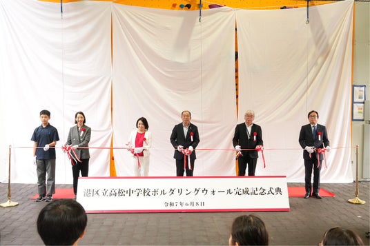 今回新たに、港区立高松中学校に、区立中学校では初となるボルダリングウォールが完成しました。これを記念して、令和7年6月8日(日曜)に完成記念式典とイベントを開催しました。