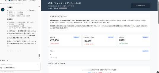 広告運用業務を包括的に支援するAIエージェントです。BigQuery連携による自動データ取得から、分析、レポーティングまでを一気通貫で実行します。