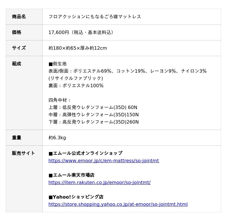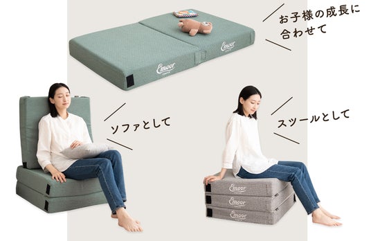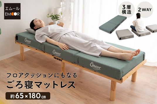 「身体に合った寝る・座る・たたむ」を提供する健康家具ブランドEMOORを展開する株式会社エムール(東京都立川市:代表取締役 高橋 幸司/以下エムール)は、2025年6月25日より、「フロアクッションにもなるごろ寝マットレス(約65×180cm)」の販売を開始しました。連結することでマットレスに、バラバラに使うことでフロアクッションやスツールにもなる休息のためのマルチユースアイテムです。