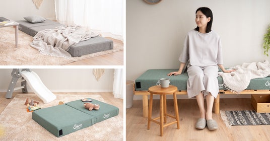 贅沢な寝心地を叶える3層構造のコンパクトサイズのマットレスが、なんと分割してフロアクッションとしても使える2WAY仕様に進化しました。