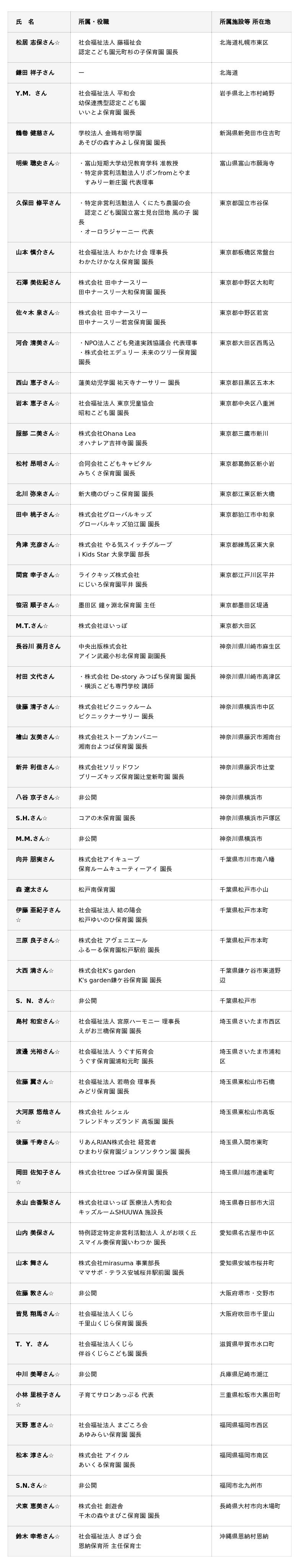 保育施設運営管理士(1級)リスト 登録者 / ☆は新規登録者