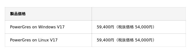 製品の詳細については、PowerGres V17紹介ページをご覧ください。