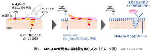ポーラ・オルビスグループの研究・開発・生産を担うポーラ化成工業株式会社(本社:神奈川県横浜市、社長:片桐崇行)は、自社で開発した極小構造を形成する独自成分Mal2Far(マルツーファー)」により、クレンジングすすぎ時にメーク汚れの肌への再付着を防止する新たな製剤化技術を開発しました。これによりメーク汚れが肌に残ることなく、すっきりと洗い流せるクレンジングオイルが実現できます。