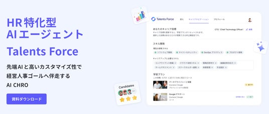 そのスキルタクソノミーを学習した独自AIシステムとカスタマイズ性の高い独自HRSaaSをベースとして、今後の日本において必ず必要となる日本版タレントインテリジェンスシステム『Talents Force(タレンツフォース)』をリリースさせて頂きました。