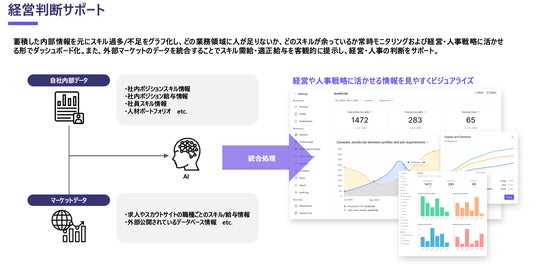 スキルの需給分析をリアルタイムで行い、個別最適なアップスキリングパスを提示し、あらゆる意思決定レイヤーにおいて自律的な支援を可能にします。