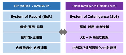 これらのシステムはタレントインテリジェンスと言われ、これまでのタレマネやERPとは大きく役割が違います。