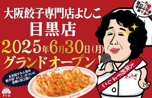 「大阪焼肉・ホルモン ふたご」「GREEN BROTHERS」など6ブランド127店舗を世界展開する株式会社FTG Company(本社:東京都目黒区、代表取締役社長:森川誠)は、2021年2月「大阪餃子専門店よしこ」(https://gyoza-yoshiko.com)を五反田に1号店をオープンしました。この度、6店舗目として東京・目黒(JR目黒駅/徒歩5分)に2025年6月30日(月)グランドオープンします。