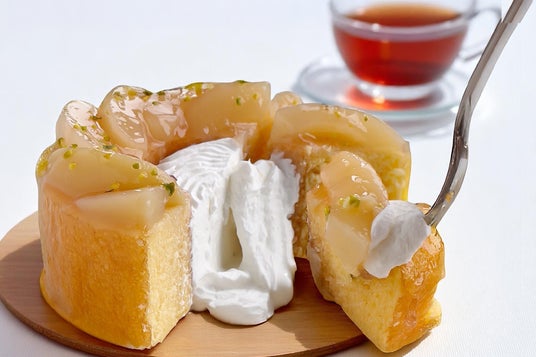 果実のジューシーさがじゅわっと広がるたび、米粉の生地がその旨みをふわっと抱きしめて、幸福感の余韻まで残してくれます。極上の口あたりと、旬の桃が奏でる贅沢なハーモニー。