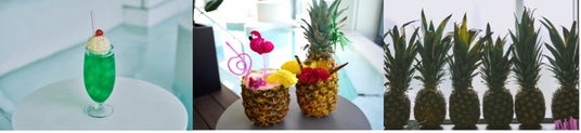 2024年に引き続き、大バズりした丸ごとパイナップルのカクテルは健在し、さらに今年はレトロ気分を味わえるメロンソーダなどが登場します。