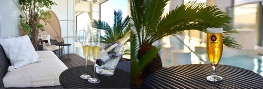 大人気のパイナップルカクテルやクリームソーダを飲みながら楽しめ、プールサイドには有料のラグジュアリーシートもご用意。