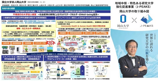 - 岡山大学 文部科学省「地域中核・特色ある研究大学強化促進事業(J-PEAKS)」に採択~地域と地球の未来を共創し、世界の革新の中核となる研究大学:岡山大学の実現を加速とともに世界に誇れる我が国の研究大学の山脈を築く~