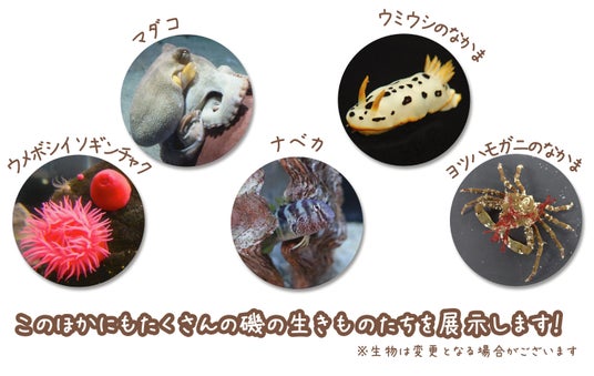 ごつごつした岩や潮の満ち引きがある「磯場」には、熱や乾燥、危険から身を守るため、すみっこにかくれたり、形が変わったり、色がついた液体を出したり… そんなふしぎな生態を持つ生きものたちがくらしています。磯のすみっコなかまを見つけにいきましょう。