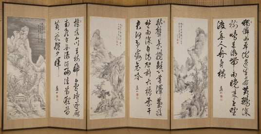 「春夏秋冬山水屏風」谷口藹山 明治時代 六曲一双(写真1)