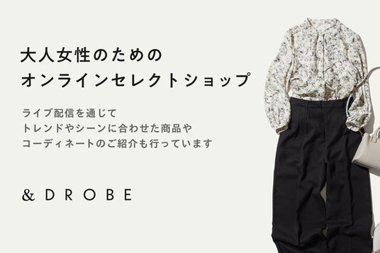 パーソナルスタイリングサービス「DROBE(ドローブ)」を展開する株式会社DROBE(本社:東京都渋谷区、代表取締役:山敷守、以下DROBE)は、2025年6月24日に、ライブ配信やインフルエンサーを活用した、大人女性のためのオンライン上のセレクトショップ「&DROBE(アンドローブ)」をリリースしました。これにより、DROBEに会員登録をしていない方でも、DROBEが独自にセレクトしたファッションアイテムを購入いただけるようになりました。