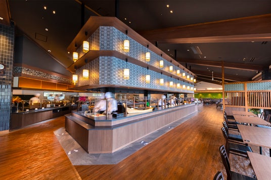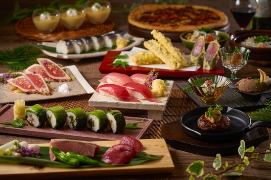 「ゆったりと、たおやかに。」お食事を楽しんでいただけるよう、各テーブルの間隔にゆとりを持たせ、今まで以上にゆったりと食事をお楽しみいただけるようにリニューアル。夕食バイキングでは、那智勝浦町の勝浦漁港で水揚げされた生まぐろのお造りや握り寿司はもちろん、まぐろ希少部位コンロ焼きやまぐろを使ったアミューズなど、ご当地の海の幸を思う存分ご堪能いただけます。また、海鮮だけでなく、熊野牛入りハンバーグ ロッシーニ風や熊野牛のピザなど、ご当地牛を使用したメニューもご用意いたします。夕食時のアルコールはすべて飲み放題となっておりますので、お好みのお酒とお料理のペアリングを楽しむのもおすすめです。
