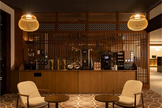 和モダンな装いのラウンジは、窓の外に広がる青い海にリゾート気分と和の落ち着いた雰囲気も感じることのできるラグジュアリーな空間。また、目の前に広がるオーシャンビューの絶景を楽しめる、海へ突き出すような造りのデッキラウンジもTAOYA那智勝浦の魅力のひとつです。無料でお楽しみいただけるドリンクを片手に、日常の喧騒から離れて、非日常の時間をお過ごしください。