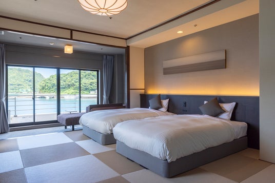 リブランドを機に、一部の客室を和ベッドルームにリノベーション。そのほか、露天風呂付客室や、和室、洋室、和洋室など、さまざまな客室をご用意しておりますので、ご宿泊される人数や旅の目的に合わせてお好きなタイプをお選びいただけます。また、ほぼすべての客室がオーシャンビューとなっているので、客室からも勝浦湾の雄大な景色をお楽しみいただけます。