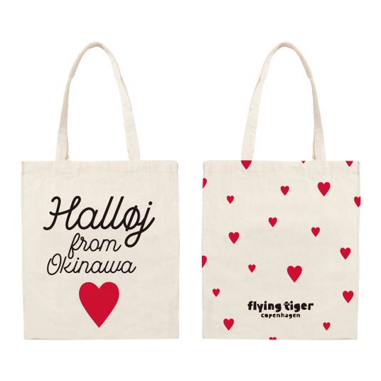 限定アイテム『ストアリミテッドバッグ』オープン日 先着100名様にプレゼント!フライングタイガーでは、各店限定の『ストアリミテッドバッグ』を販売しています。〈イオンモール沖縄ライカムストア〉では、デンマークの人たちが大好きなモチーフ”ハート”と、メッセージ“Halloj from Okinawa” (デンマーク語で「沖縄からこんにちは!」)を配したバッグを展開。3/20(木・祝)のオープン日、先着100名様に、この『ストアリミテッドバッグ』をプレゼントします。