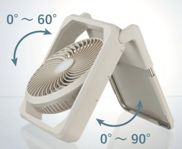 風向きは0°~60°、スタンドは0°~90°まで調整可能。