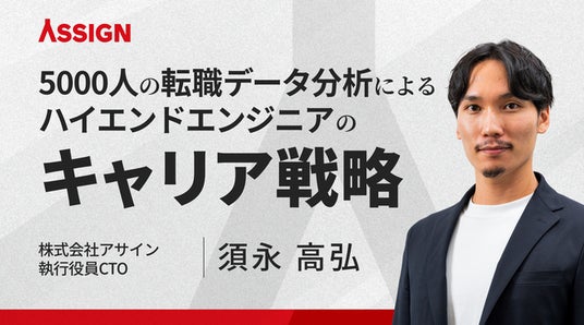 株式会社アサインは、2025年7月3日にキャリア講義『5000人の転職データ分析で解明「ハイエンドエンジニア」のキャリア戦略』を開催いたします。本講義では、株式会社アサイン 執行役員CTO・須永高弘が登壇します。自らも現役エンジニアとして技術と経営の両面を歩んできた須永が、5000人分のキャリアデータと実体験をもとに、「どの様な経験やスキルが次のステージを切り拓くのか」を具体的に解説します。