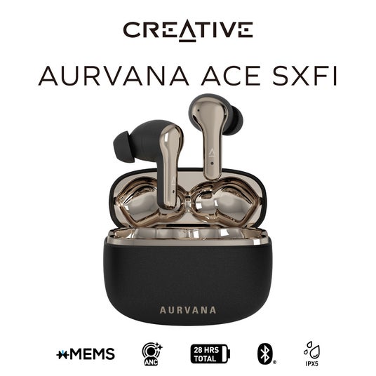 このSuper X-Fi技術を完全ワイヤレス イヤホンのコアにシームレスに統合したCreative Aurvana Ace SXFIは、内蔵Super X-FiによってあらゆるBluetooth(R) ワイヤレス オーディオや各種ストリーミング プラットフォームで提供される音楽や映像コンテンツで、Super X-Fi 空間オーディオによる没入感のあるオーディオ体験がお楽しみ頂けます。