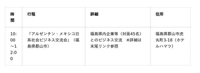「信頼で世界をつなぐ」をビジョンに掲げ、日本の政府開発援助(ODA)実施機関として国際協力を推進する独立行政法人国際協力機構(理事長:田中明彦、本部所在地:東京都千代田区、以下:JICA)は、7月10日(木)より、アルゼンチンとメキシコの日系社会から食品関連のビジネスリーダーを招へいし、福島県でビジネス交流会の開催および福島県内の食品生産現場を視察する事業を実施します。