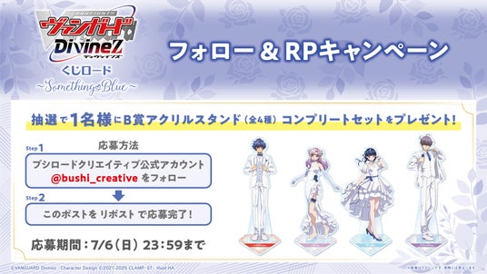 新作オンラインくじの発売を記念して、ブシロードクリエイティブ公式Xにて抽選1名様にB賞のアクリルスタンドコンプリートセットが当たるフォロー&リポストキャンペーンを期間限定で開催!