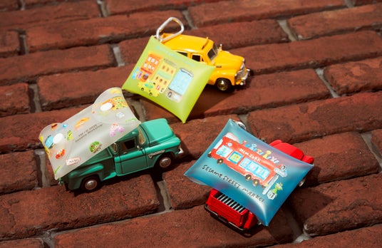 (左上より時計回り:イエロー(エルモ)、オレンジ(クッキーモンスター)、ピンク(アビー)、ホワイト(キャラクター集合)、ブルー(フェイスモチーフ集合)、ライム(自由の女神))