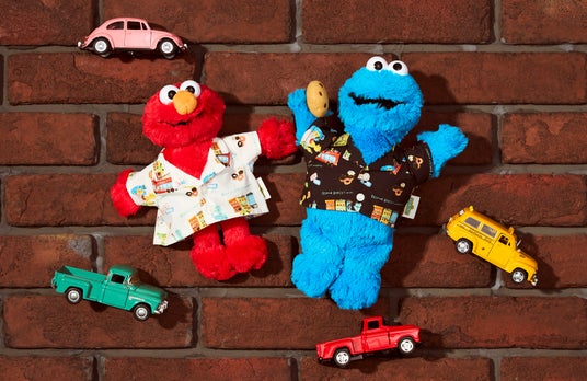 柔らかなタッチで描かれたセサミストリートの仲間たちと、自由の女神やピザ、ホットドッグスタンド、イエローキャブなど、ニューヨークらしいモチーフがぎゅっと詰まったオリジナルアロハシャツが登場。