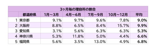 そんな弊社ならではの、2024年10月~12月期における全国の理美容店開業データをまとめた「全国理美容開業ランキング レポート ver3」を発表いたします。