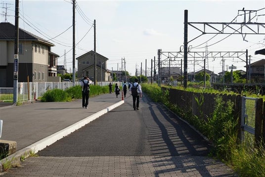 JR内房線八幡宿駅東口ロータリーから五井駅方面線路沿いの道路