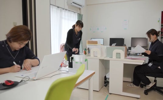 本部には事務スタッフが常駐し、レセプト業務、カルテ管理、記録チェック、電話対応、病院連携等を担います。